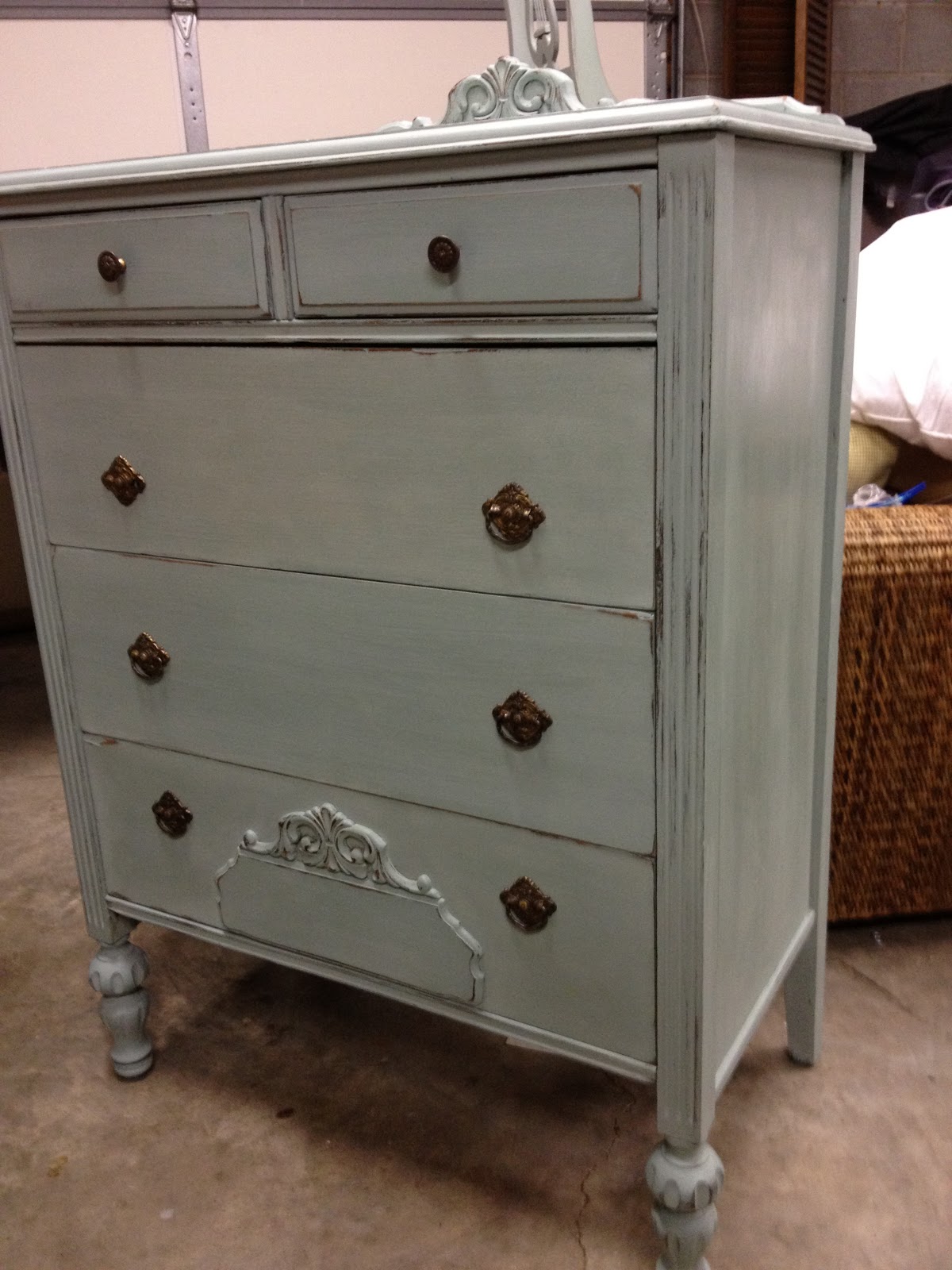 | BEFORE.... This is a 1930's vanity that was in terrible shape. It's the first piece of furniture that I had to strip before I could paint. |
